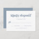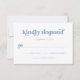 Esta placa de resposta simples e boho rsvp apresenta azul empoeirado, tipografia retrô em um fundo branco. Coordena-se perfeitamente com o nosso chá de panela retrógrado, chá casal, bat mitzvah ou convites bar mitzvah.