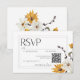 Cartão RSVP Boho Ouro Amarelo Flores de Prados Branco Código Q