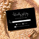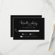 Elevem sua suíte de papelaria de casamento com esses cartões RSVP de script de na moda boho, combinando caligrafia livre e sofisticação minimalista. Apresentando "Resposta gentil" em script orgânico em um fundo preto elegante, essas placas incluem campos personalizáveis para prazos de RSVP.