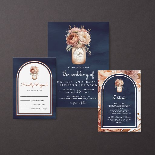 Navy Blue Terracotta Floral Mason Jar WeddingCriado por Shabbir D