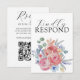 This elegant wedding RSVP card features romantic watercolor florals in soft blush, peach, and dusty blue tones paired with modern black typography and handwritten script. Designed for effortless responses, this card includes a customizable QR code and wedding website link, allowing guests to reply online with ease. Perfect for garden, romantic, or classic weddings, this RSVP card beautifully blends timeless florals with modern convenience.