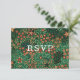 Cartão RSVP Bold Dark Green Red Floral Textile Wedding Meal