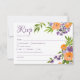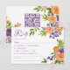 Cartão RSVP Bold Orange and Purple Floral QR Code Wedding