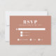 Esta placa de RSVP moderna apresenta uma frente de terracotta chic com um layout minimalista, perfeito para capturar as respostas de seus convidados em estilo. O cartão inclui caixas de seleção para seleções de refeições, fazer fácil de acomodar preferências alimentares. As costas adicionam um rosa macio e complementar para um toque extra de elegância. Ideal para temas rústicos, boho ou contemporâneos, esta placa RSVP se emparelha maravilhosamente com a coordenação de convites de bat mitzvah.