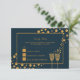 Cartão RSVP Bolhas Douradas de Champanhe - Azul e Dourado - Ca