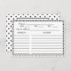 Cartões de resposta personalizados de cartão de receita de estilo de vintage para um chá de panela. Bolinhas pretas em branco. Volte no tempo e hospede um chá de panela que é uma deliciosa explosão do passado com nossa coleção de Chás de panela inspirada na Kitchen. Adote o charme de ontem enquanto celebra a futura noiva com um toque de humor e nostalgia. A peça central desta coleção é um gráfico vintage caprichoso que retrata uma festa de cocktail de cozinha, complementado perfeitamente pela legenda lúdica "Eu só tenho uma cozinha porque ela veio com a casa." De convites que transportam seus convidados para uma era passada para decorar que transforma seu espaço em um refúgio retrô, cada detalhe exude elegância e riso antigos. Partilha a alegria de uma noiva que é desafiada internamente com sinais personalizados, favores, e atividades que juntam o espírito do passado e o entusiasmo do futuro. Esta coleção é uma mistura animadora de estética vintage e celebração moderna, garantindo um chá de panela inesquecível cheio de memórias e risos queridos que ecoam ao longo dos tempos.