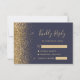 Cartão RSVP Borda da Brilhante Azul Escuro Moderno e Dourada