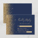A borda esquerda desta elegante placa de caixa RSVP de casamento moderna apresenta uma borda falsa dourada. O texto personalizável combina manuscrito colorido de ouro pálido, fontes copperplate e itálico em um fundo azul marinho. O verso apresenta um design marinho azul e dourado correspondente.