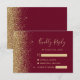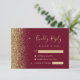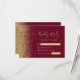 A borda esquerda desta elegante placa de caixa RSVP de casamento moderna apresenta uma borda falsa dourada. O texto personalizável combina manuscritos dourados, copperplate e fontes itálicas em um fundo vermelho arrojado. O lado inverso apresenta um burgundy e um design de ouro correspondentes.