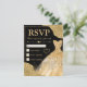 Cartão RSVP Bordas de Glitter Dourado e Vestido Doces 16