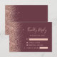 A borda esquerda desta elegante placa de caixa RSVP de casamento moderna apresenta uma borda falsa rosa dourada. O texto personalizável combina letra rosa-rosa pálida, letra copperplate e fontes itálicas em um fundo burgundy escuro. O lado inverso apresenta uma pescada escura e design de ouro rosa.