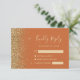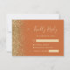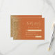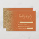 A borda esquerda desta elegante placa de caixa RSVP de casamento moderna apresenta uma borda falsa dourada. O texto personalizável combina manuscrito pálido de cor dourada, fontes copperplate e itálico em um fundo laranja queimado. O verso apresenta uma design de cor laranja queimada e ouro correspondente.