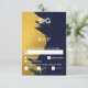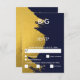 Cartão RSVP Brushstrokes Douradas falsas e Marinho azul com mo
