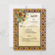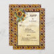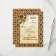 Um buquê de casamento floral de girassol amarelo e marrom impressionante sobre um fundo amarelo com uma camada de ouro. Enrolado em marrom sobre um padrão de girassol. Excelente! Também escolhi a opção de papel Champagne Shimmer nesta placa RSVP. A parte de trás do cartão é o padrão de girassol marrom e dourado.