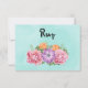 Um Rsvp de casamento romântico e na moda. Um belo buquê de flores de aquarela, formado por peônias cor-de-rosa, anêmonas roxas e tulipas laranja cercadas por folhas verdes. Colocada sobre uma textura de cor da água verde de menta macia.