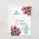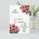 Um cartão de RSVP de casamento personalizável, vibrante, aquarela, design de tulipas vermelhas brilhantes, cores de texto correspondentes em vermelho e verde.