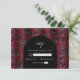 Este elegante design apresenta uma imagem de fundo modesta da cor damasco floral vintage faux velvet em burgundy e preto. As iniciais "rsvp" aparecem no elegante script de caligrafia de cinza prateada, com texto personalizável e espaços para as respostas dos convidados abaixo. Um burgundy e uma cor damasco preta coincidentes aparecem no verso.