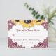 Cartão RSVP Burgundy Sunflower Lace Burlap Hearts Wedding
