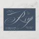 Cartão RSVP Caligrafia Romântica Elegante Marinho Azul e Branc