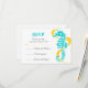 Cavalo-marinho e tartaruga-de-algas-marinhas, cartão de resposta/resposta RSVP de casamento amarelo, que inclui um cavalo azul-turquesa e algas-marinhas amarelas sobre fundo branco. Esta design de modelo é parte de um casamento perfeito para um casamento de verão na praia. É completamente personalizável.