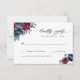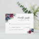 Cartão de Resposta de Casamento em Aquarela Azul Marinho Elegante com Flores Botânicas em Borgonha, Marsala e Vermelho