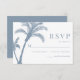 Cartão RSVP Casamento Azul com Derrame de Praia Tropical Palm