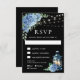 Cartão RSVP Casamento Blue Hydrangea Lanterna Black Boho