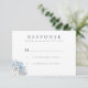 Uma elegante vrsvp de casamento com um tronco azul de hidrocoloração. O texto está na letra de sans serif azul e preta, Este é o design faz parte da nossa coleção de Hydrandea Azul.