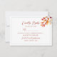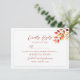 Elegante e sazonal, este cartão de RSVP de casamento de outono em tons de azul-turquesa e laranja apresenta folhagem de outono em aquarela e um layout clássico e simples para coletar as respostas dos convidados. Com espaço para preferências de refeição e data de retorno, é perfeito para coordenar com o conjunto de materiais do seu casamento temático de outono. Totalmente personalizável para combinar com os detalhes do seu evento e estilo pessoal.