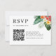 Um elegante cartão rsvp de casamento no tema do verão tropical que consiste no Código QR e no site de casamento que você pode personalizar.
