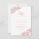 Este cartão RSVP tropical rosa dourado tem folhas de palma em cantos opostos, e um fundo branco limpo, para uma design de casamento simples e elegante. Na parte de trás está uma folha de palma dourada rosa. Encontre os convites e o resto da suíte de casamento na coleção. *Se você quiser itens adicionais com este design ou outra personalização de design, entre em contato comigo através do Zazzle.