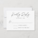 Simples cartão RSVP de casamento botânico com a data de RSVP e o texto de aceitação/declinação do cliente. "Resposta gentil" é exibido em um script manuscrito preto. A elegante placa RSVP reverte para exibir um padrão de folhagem preto e branco. Projetado para coordenar com a nossa coleção de casamento Botânico Moderno Minimalista.