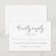 Este cartão de RSVP de casamento é tão trendy e na moda quanto a sua próxima celebração. A caligrafia contemporânea exclusiva faz uma declaração, enquanto opções claras de resposta e um espaço para a contagem de convidados garantem um processo RSVP suave. Este cartão de resposta certamente fará com que seus convidados fiquem animados para comemorar com você em estilo.
