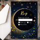 Capture o encantamento de sua celebração celestial com esta Elegante placa de RSVP da Noite Estrelada Celestial de Moon Místico Crescente Celestial. Contra um céu noturno profundo e estrelado, a design apresenta uma lua crescente e estrelas ouros espalhadas, evocando um senso de maravilha e romance. Os sotaques de ouro falsos e legantes acrescentam um toque de sofisticação, fazer-o o complemento perfeito para um tema de casamento místico ou inspirado na lua. Uma maneira fantástica de reunir respostas para a sua noite mágica sob as estrelas.