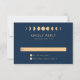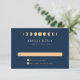 Adicione um toque de elegância cósmica ao seu evento com nosso Cartão de Resposta de Casamento Celestial. Mergulhe na simplicidade encantadora do nosso design, que reflete a magia fascinante dos corpos celestes. Nosso design moderno, mas atemporal, apresenta uma série de fases da lua artisticamente renderizadas em dourado sobre um impressionante fundo azul-marinho. Esse toque de dourado adiciona um toque de calor e charme cintilante à base azul meia-noite, aumentando ainda mais o apelo convidativo da peça. O design mantém uma abordagem minimalista, permitindo que os elementos celestes brilhem de verdade. Você pode personalizar facilmente para atender às suas necessidades, garantindo que cada peça ecoe seu estilo único.