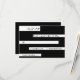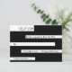 Este elegante cartão RSVP de casamento preto e branco é perfeito para um casamento moderno. o simples design apresenta uma caligrafia branca elegante num fundo listrado a preto.