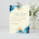 Convide seus hóspedes para responder em estilo com esta elegante placa RSVP com design de cor d'água azul e dourada. As pinceladas de abstrato e as pestanas adicionam uma aparência artificialmente floral, enquanto o fundo amarelo pálido melhora a sensação de tempo de primavera suave. O texto azul profundo complementa o design geral, criando um olhar coeso e sofisticado.