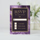 Cartão RSVP Casamento com Agitação Dourada e Roxo Elegante