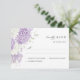 Este cartão de RSVP elegante apresenta flores de lavanda e lilás suaves combinadas com delicadas hortênsias brancas, criando um visual romântico e refinado para o conjunto de papelaria de casamento.