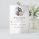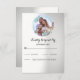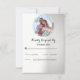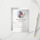 Um convite moderno e simples com uma imagem em uma grinalda de flores turquesa. O fundo é gradiente branco e cinza