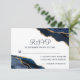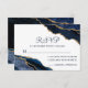 Este cartão de resposta de casamento de luxo moderno apresenta uma pedra preciosa de ágata azul naval e dourada chic e moderna com monograma de letra elegante no verso.