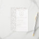 Pale Taupe Monograma Crest Wedding Suite RSVP cartão: Crista monograma de arte de linha inspirada em Vintage com tipografia elegante pálida. Possui um padrão floral de peônias chinoiserie para sofisticação do eterno.