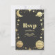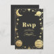 Cartão RSVP Casamento da Lua do Crescente Negro Dourado Celest