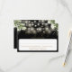 Este elegante cartão RSVP de casamento preto e dourado, com luzes bonito de cordas e verde floral, pode ser personalizado com as suas informações em tipografia gráfica. Projetado por Thisnotme©