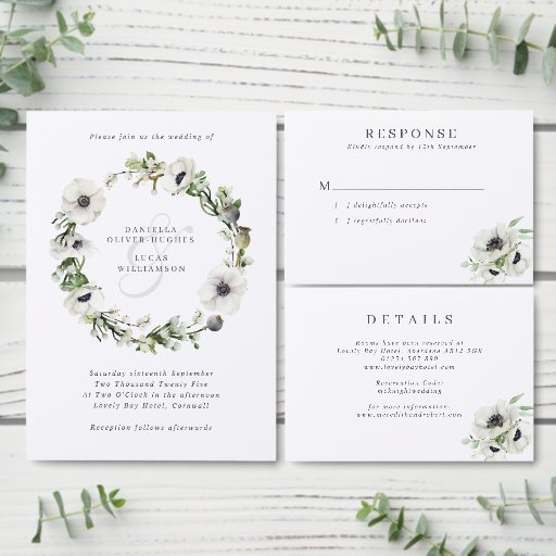Cartão RSVP de Casamento de Anêmonas de Aquarela de inverno. Convite de correspondência disponível