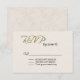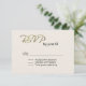Cartão RSVP de casamento legante feito em um marfim texturizado olhando frente com texto gráfico de tom de ouro de rico lendo RSVP. A parte de trás do cartão é feita em um fundo úmido bronzeado e marfim. Personalize todo o texto para o seu dia especial. Os produtos correspondentes estão disponíveis.