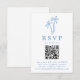 Esta placa RSVP inspirada na costa apresenta palmeiras azuis desenhadas à mão no topo de um fundo branco. Ideal para casamentos de praia, cerimônias à beira-mar ou comemorações tropicais, o design inclui espaço para um código QR personalizado, permitindo que os convidados digitalizem e RSVP com facilidade. Personalize a seção inferior com o seu site de casamento e instruções especiais para uma experiência de convidado perfeita.
