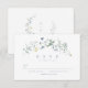 Design de flores silvestres de cor aquática delicada e elegante. Paletas de pastel de amarelo macio, branco esbranquiçado, verde-sábio, azul empoeirado e verde botânico, simples e romântico. Cartões RSVP de casamento floral de excelente para casamento rústico moderno, casamento de jardins de campo e casamento de boho em primavera e verão. Veja todas as peças correspondentes na coleção.
