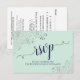 Cartão RSVP Casamento de Caligrafia Elegante Azul Mint Green &