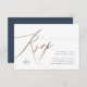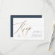 Cartão RSVP Casamento de Caligrafia marinho Azul e Folha Ouro